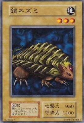 《鎧よろいネズミ》 † 通常モンスター 星3/地属性/獣族/攻 950/守1100 鎧のようにかたい毛で体を守ることができるネズミ。