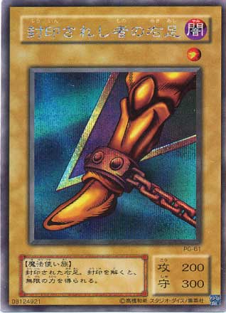 封印ふういんされし者ものの右足みぎあし/Right Leg of the Forbidden One † 通常モンスター(制限カード) 星1/闇属性/魔法使い族/攻 200/守 300 封印された右足。封印を解くと、無限の力を得られる。