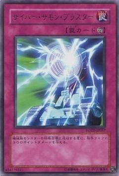 サイバー・サモン・ブラスター/Cyber Summon Blaster》 永続罠 機械族モンスターが特殊召喚される度に、 相手ライフに300ポイントダメージを与える。