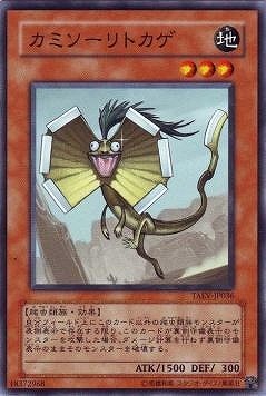 《カミソーリトカゲ/Razor Lizard》 † 効果モンスター 星3/地属性/爬虫類族/攻1500/守 300 自分フィールド上にこのカード以外の爬虫類族モンスターが存在する限り、 このカードが裏側守備表示のモンスターを攻撃した場合、 ダメージ計算を行わず裏側守備表示のままそのモンスターを破壊する。