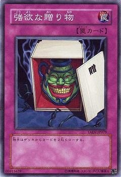 《強欲ごうよくな贈おくり物もの/The Gift of Greed》 † 通常罠 相手はデッキからカードを2枚ドローする。