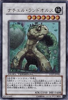 ナチュル・ランドオルス/Naturia Landoise》 † シンクロ・効果モンスター 星7/地属性/岩石族/攻2350/守1600 地属性チューナー+チューナー以外の地属性モンスター1体以上 このカードがフィールド上に表側表示で存在する限り、 手札の魔法カード1枚を墓地へ送る事で、 効果モンスターの効果の発動を無効にし破壊する。