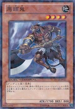 《馬頭鬼めずき/Mezuki》 † 効果モンスター 星4/地属性/アンデット族/攻1700/守 800 (1):自分メインフェイズに墓地のこのカードを除外し、 自分の墓地のアンデット族モンスター1体を対象として発動できる。 そのアンデット族モンスターを特殊召喚する。