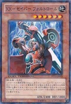 《XXダブルエックス−セイバー フォルトロール/XX-Saber Faultroll》 † 特殊召喚・効果モンスター 星6/地属性/戦士族/攻2400/守1800 このカードは通常召喚できない。 自分フィールドに「X−セイバー」モンスターが 2体以上存在する場合のみ特殊召喚できる。 (1):1ターンに1度、自分の墓地のレベル4以下の 「X−セイバー」モンスター1体を対象として発動できる。 そのモンスターを特殊召喚する。