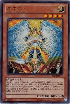 《オネスト/Honest》 † 効果モンスター 星4/光属性/天使族/攻1100/守1900 (1):自分メインフェイズに発動できる。 フィールドの表側表示のこのカードを持ち主の手札に戻す。 (2):自分の光属性モンスターが 戦闘を行うダメージステップ開始時からダメージ計算前までに、 このカードを手札から墓地へ送って発動できる。 そのモンスターの攻撃力はターン終了時まで、 戦闘を行う相手モンスターの攻撃力分アップする。