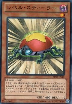 《レベル・スティーラー/Level Eater》 † 効果モンスター(禁止カード) 星1/闇属性/昆虫族/攻 600/守 0 (1):このカードはモンスターゾーンに存在する限り、 アドバンス召喚以外のためにはリリースできない。 (2):このカードが墓地に存在する場合、 自分フィールドのレベル5以上のモンスター1体を対象として発動できる。 そのモンスターのレベルを1つ下げ、 このカードを墓地から特殊召喚する。