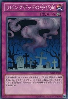 《リビングデッドの呼よび声ごえ/Call of the Haunted》 † 永続罠 (1):自分の墓地のモンスター1体を対象としてこのカードを発動できる。 そのモンスターを攻撃表示で特殊召喚する。 このカードがフィールドから離れた時にそのモンスターは破壊される。 そのモンスターが破壊された時にこのカードは破壊される。