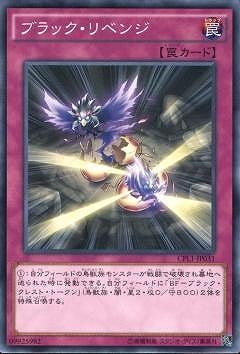 《ブラック・リベンジ/Black Wing Revenge》 † 通常罠 (1):自分フィールドの鳥獣族モンスターが 戦闘で破壊され墓地へ送られた時に発動できる。 自分フィールドに「bf−ブラック・クレスト・トークン」 (鳥獣族・闇・星2・攻0/守800)2体を特殊召喚する。