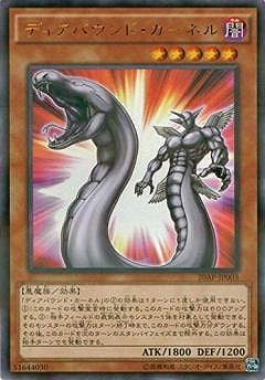 《ディアバウンド・カーネル/Diabound Kernel》 † 効果モンスター 星5/闇属性/悪魔族/攻1800/守1200 「ディアバウンド・カーネル」の(2)の効果は1ターンに1度しか使用できない。 (1):このカードの攻撃宣言時に発動する。 このカードの攻撃力は600アップする。 (2):相手フィールドの表側表示モンスター1体を対象として発動できる。 そのモンスターの攻撃力はターン終了時まで、このカードの攻撃力分ダウンする。 その後、このカードを次のターンのスタンバイフェイズまで除外する。 この効果は相手ターンでも発動できる。