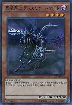 《死霊騎士しりょうきしデスカリバー・ナイト/Doomcaliber Knight》 † 効果モンスター 星4/闇属性/悪魔族/攻1900/守1800 このカードは特殊召喚できない。 (1):モンスターの効果が発動した時、このカードをリリースして発動する。 その発動を無効にし破壊する。