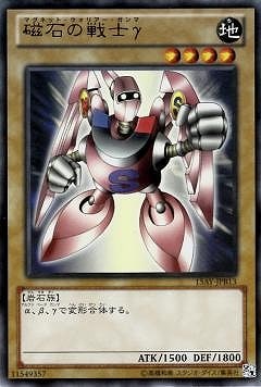 磁石の戦士γマグネット・ウォリアー・ガンマ/Gamma the Magnet Warrior》 † 通常モンスター 星4/地属性/岩石族/攻1500/守1800 α、β、γで変形合体する。