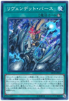 《リヴェンデット・バース/Revendread Evolution》 † 儀式魔法 「ヴェンデット」儀式モンスターの降臨に必要。 このカード名のカードは1ターンに1枚しか発動できない。 (1):レベルの合計が儀式召喚するモンスターと同じになるように、 自分の手札・フィールドのモンスターをリリース、 またはリリースの代わりに自分のデッキから「ヴェンデット」モンスター(1体まで)を墓地へ送り、 自分の手札・墓地から「ヴェンデット」儀式モンスター1体を儀式召喚する。 この効果で儀式召喚されたモンスターは次のターンのエンドフェイズに破壊される。