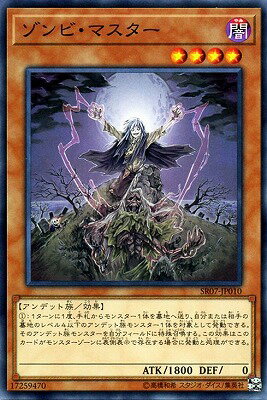 《ゾンビ・マスター/Zombie Master》 † 効果モンスター 星4/闇属性/アンデット族/攻1800/守 0 (1):1ターンに1度、手札からモンスター1体を墓地へ送り、 自分または相手の墓地のレベル4以下の アンデット族モンスター1体を対象として発動できる。 そのアンデット族モンスターを自分フィールドに特殊召喚する。 この効果はこのカードがモンスターゾーンに表側表示で存在する場合に発動と処理ができる。