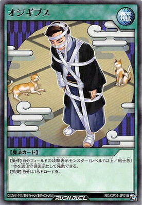 通常魔法 【条件】自分フィールドの攻撃表示モンスター(レベル7以上/戦士族)1体を表側守備表示にして発動できる。 【効果】自分は1枚ドローする。