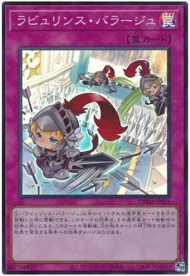 《ラビュリンス・バラージュ》 † 通常罠 (1):「ラビュリンス・バラージュ」以外のセットされた通常罠カードを自分が発動した時に発動できる。 このカードの効果は、その通常罠カード発動時の効果と同じになる。 このカードの発動後、次の相手ターンの終了時まで自分の効果で発生する相手への効果ダメージは0になる。