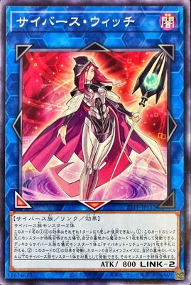 《サイバース・ウィッチ/Cyberse Witch》 † リンク・効果モンスター リンク2/闇属性/サイバース族/攻 800 【リンクマーカー:左下/下】 サイバース族モンスター2体 このカード名の(1)(2)の効果はそれぞれ1ターンに1度しか使用できない。 (1):このカードのリンク先にモンスターが特殊召喚された場合、 自分の墓地から魔法カード1枚を除外して発動できる。 デッキからサイバース族の儀式モンスター1体と「サイバネット・リチューアル」1枚を手札に加える。 (2):このカードの(1)の効果を発動したターンの自分メインフェイズに、 自分の墓地のレベル4以下のサイバース族モンスター1体を対象として発動できる。 そのモンスターを特殊召喚する。